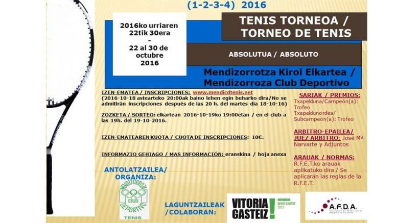 TXAPELKETA SOZIALA/CAMPEONATO SOCIAL (1-2-3-4) 2016 Del 22 al 30 de Octubre se celebrará en las instalaciones de Mendizorroza, el Campeonato Social 2016 Absoluto. Hoja de Inscripción LISTA ADMITIDOS CUADROS ORDEN DE JUEGO FOTOS Comparte este contenido: en Twitter en Facebook