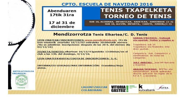 Del 17 al 31 de Diciembre se jugara el Campeonato de Navidad en varias categorías. Las de veteranos masculino(+35 ) y veteranas (+30) y dobles absoluto, (mas. y fem) son OPEN. El cierre de inscripciones es el LUNES 14 de Diciembre.