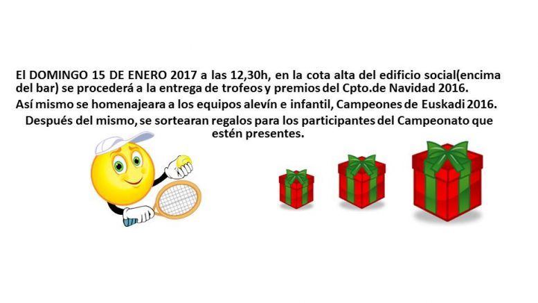 ENTREGA TROFEOS, PREMIOS Y SORTEO DEL CPTO.NAVIDAD 2016 (fotos de la entrega) FOTOS NAVIDAD 2016 Comparte este contenido: en Twitter en Facebook