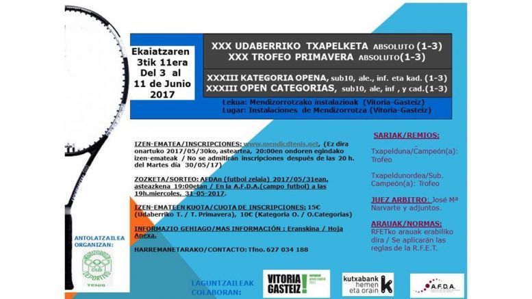 hoja inscripción Primavera hoja inscripción open categorías listas de admitidos «cuadros» orden de juego, hasta el 11