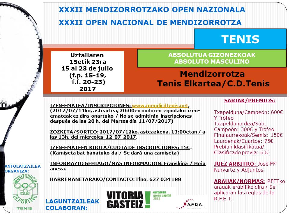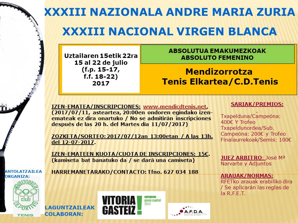 hoja inscripción N.Virgen Blanca (abs fem) Bases del Torneo hoja inscripción Open N. de Mendi (abs mas) listas de admitidos «cuadros Open y Virgen 2017 orden de juego, viernes 21