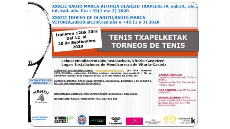 Egun on guztioi, desde el 12 al 20 de septiembre se va a celebrar trigesimotercera edición del TROFEO DE OLARIZU en las Instalaciones de Mendizorrotza de Vitoria-Gasteiz y organizado por el Club.