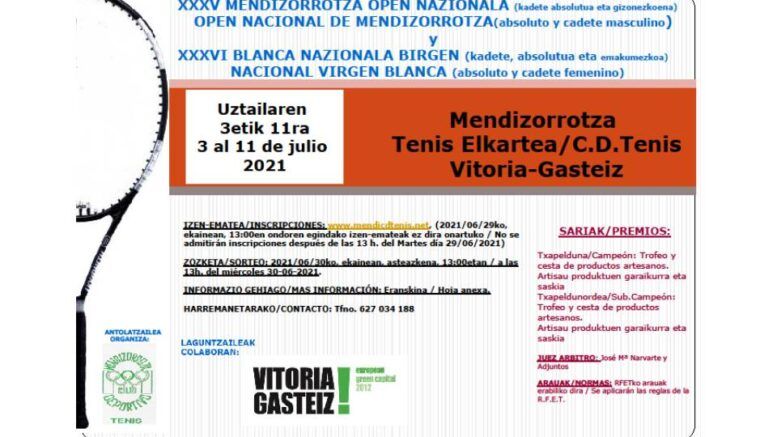 - XXXV OPEN NACIONAL DE MENDIZORROTZA, absoluto y cadete masculino y el XXXVI NACIONAL VIRGEN BLANCA, absoluto y cadete femenino, entre los días, 3 al 11 de Julio.