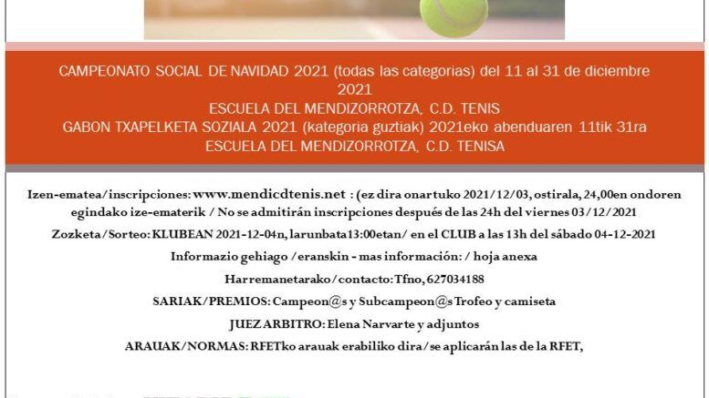 Kaixo guztioi, se abren las inscripciones para el Cpto. de Navidad para los alumno de la escuela del Club.