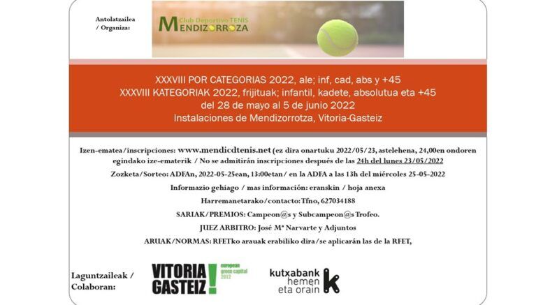 Egun on guztioi, buenas tardes a tod@s, desde el 28 de mayo al 5 de junior vamos a celebrar la 38º edición del Open por categorías 2022.