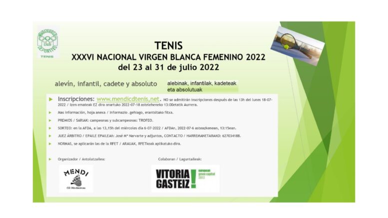 Kaixo guztioi, hola a todas, del 23 al 31 de julio, se va a celebrar el «XXXVII NACIONAL VIRGEN BLANCA FEMENINO 2022.
